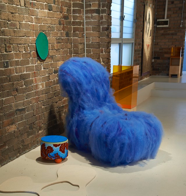 Blue Chair in Domesticated Aps Sydney 2014 (Polystyrene, polyester wadding spray painted, hand dyed wool)